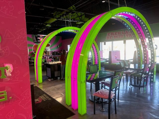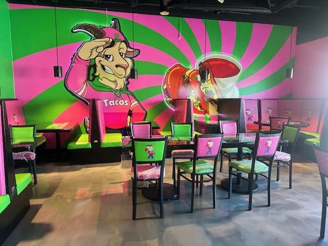 Foodlines & Erickson Sullivan transformed a standard Casey’s gas station into a stunning, vibrant space that redefines casual dining. The redesigned interior features an eye-catching, brightly colored aesthetic centered around the restaurant’s mascot Birriana the goat. The dining room accommodates 90 guests and includes a self-serve salsa bar, adding a dynamic and interactive element to the dining experience. The kitchen is equipped with two cooklines to support the preparation of authentic, made-fresh daily cuisine. Additionally, the space includes a paletería, offering quick-serve frozen treats and snacks for customers on the go.
