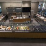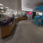 The Willa Cather Dining Center at the University of Nebraska – Lincoln is a two-story facility designed to meet students’ diverse dining needs. The lower level features a C-Store offering grab-and-go items and Husker Hoagies, a sandwich shop with customizable options. This floor also includes a large production kitchen with walk-in coolers, freezers, and prep areas to support high-volume food service.
